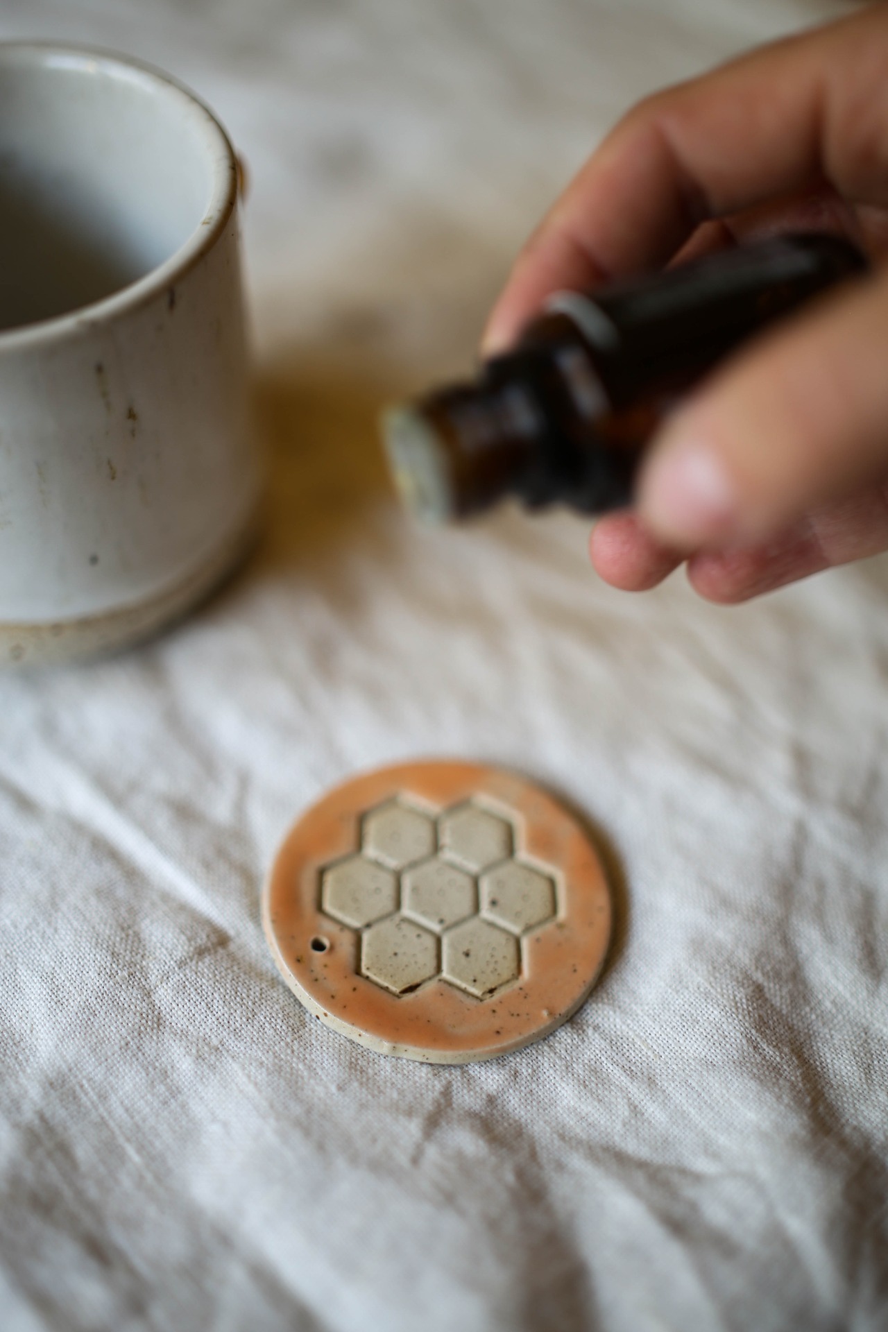 Keramický medailónik na esenciálny olej, či vonnú tyčinku. Stačí pár kvapiek esenciálneho oleja nakvapkať na neglazovanú časť a položiť si ho napríklad na pracovný stôl. Postupné a jemné uvoľňovanie oleja vám navodí príjemnú atmosféru.